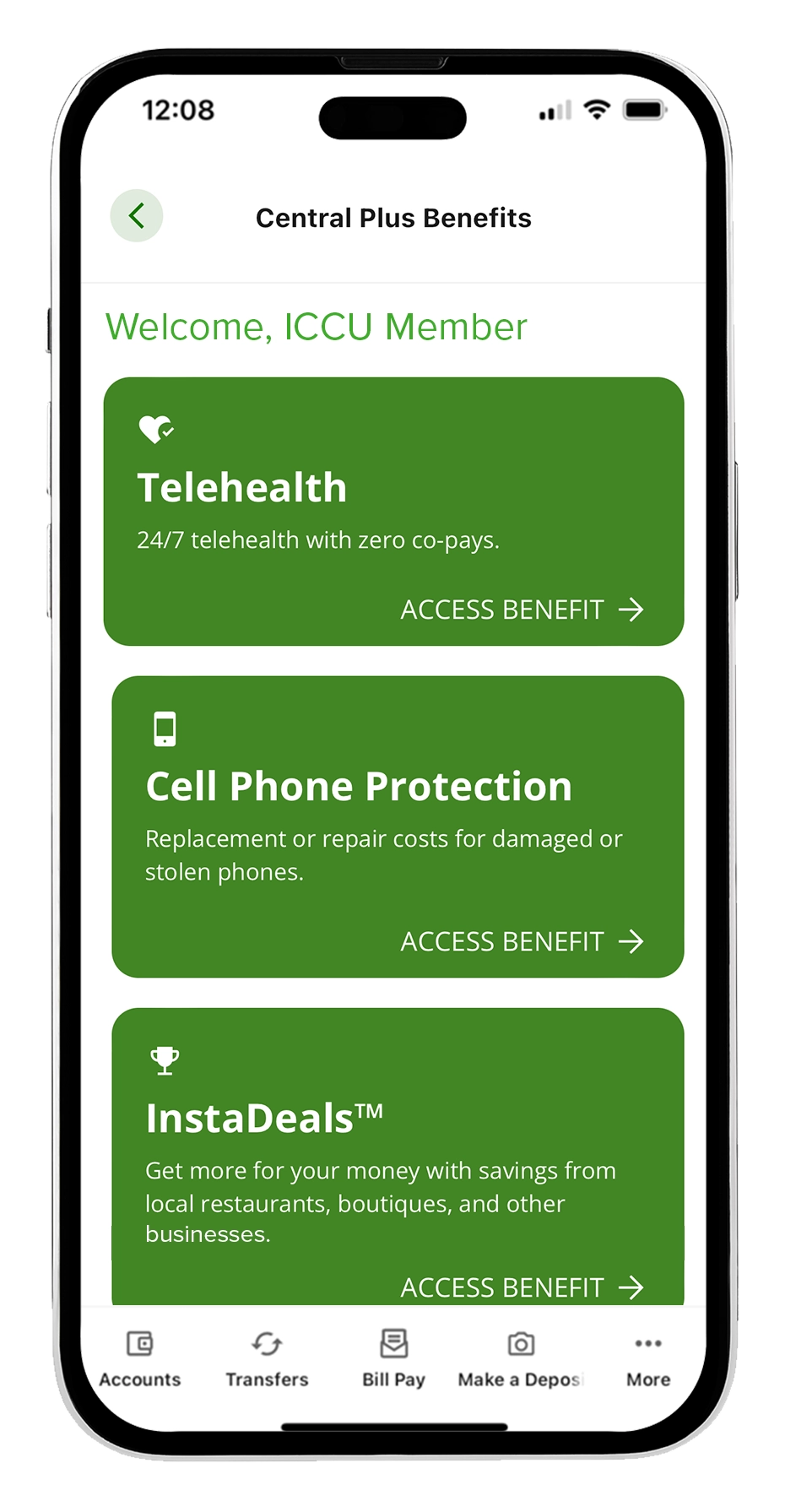 3. Restrictions apply. Log in to your ICCU Online or Mobile Banking and connect your Central Plus Checking benefits for details.