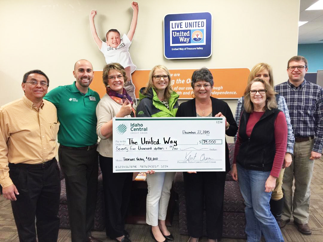 During the first twelve days of December, we ran a special promotion where new ICCU members received $75, and, for every new membership opened, we donated $75 to the local United Way chapters of Idaho.